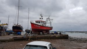 A second take on this subject, being more cropped/zoomed in, and having more degrees of subtlety in tone. But which is ‘better’? I like both equally. Just goes to show there are plenty of alternative ways of approaching one reference. You’ve got to have enough ‘interest’ in a painting, drawing just as much as you need from a reference/your subject. The little bit of extra colour on the main boat here, and addition of the boat ‘number plate’ (I don’t know what its called) add something. Importantly there’s still a solidity and overall ‘wholeness’ to the shape of the boats that mean the dry-brush marks and smaller marks (boats) in the distance contribute very effectively.