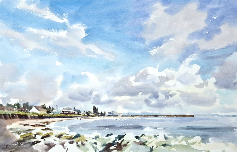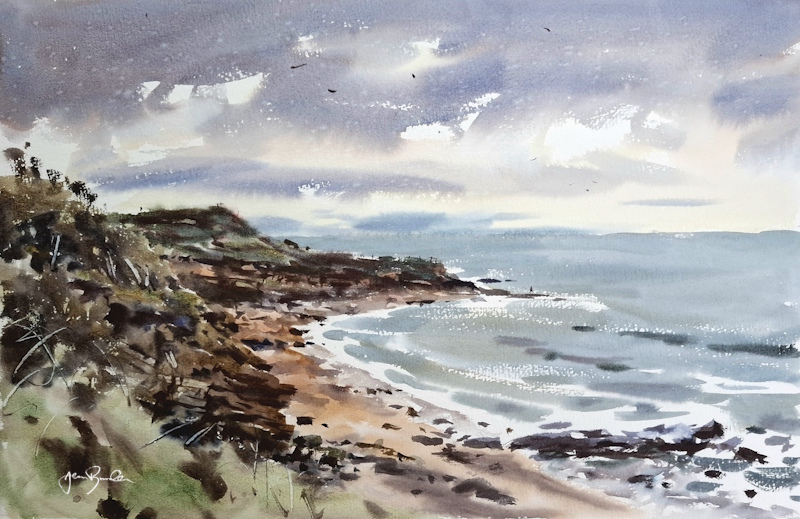 Plein air painting is a process of: inspiration, doing some advance planning, then exploring and absorbing a place, being there through all senses and recording/conveying aspects of the occasion, with the aim of ‘sharing the experience’ (via the excitement and volatility of intuitive, spontaneous watercolour!) This ultimately being the whole purpose behind my paintings, and being a painter. These paintings are completed entirely outdoors in front of the subject in one visit.